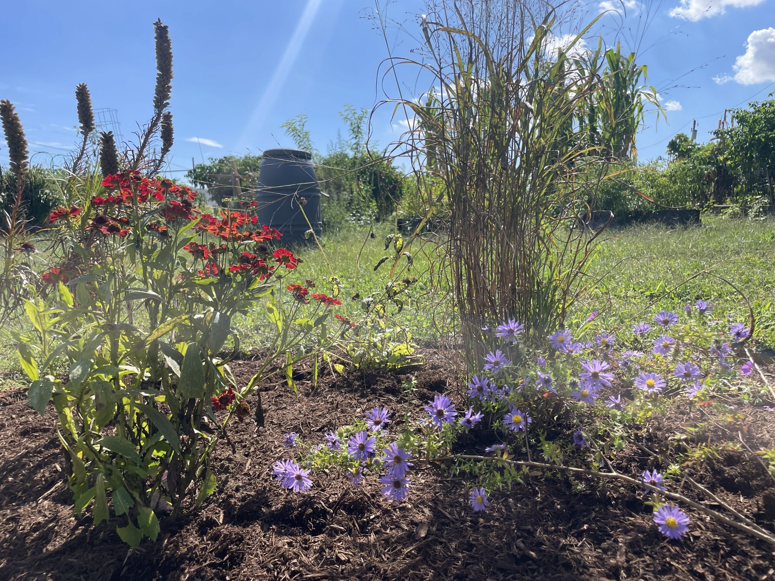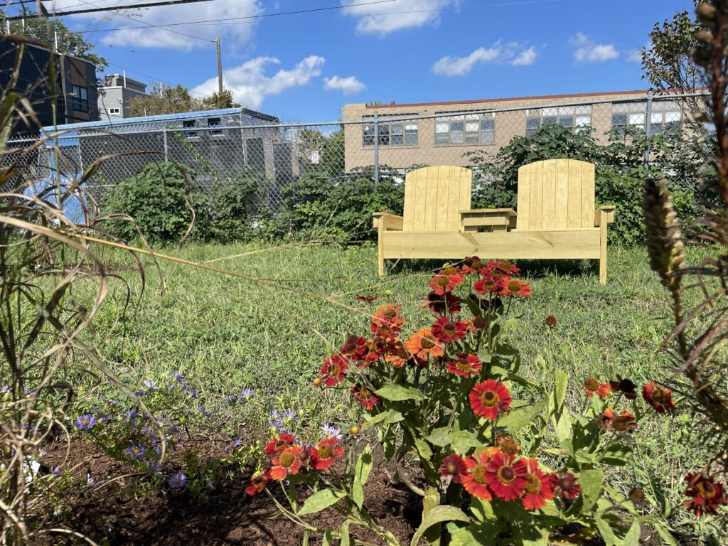 In South Philadelphia, the Council worked with the Church of the Redeemer Baptist’s Growing Together Community Garden to expand the existing native pollinator garden and create a gathering space for gardeners of the site’s over 200 plots. This included the installation of new picnic tables with shade umbrellas as well as several park benches. The creation of a community gathering space in the garden will support residents to further develop this local greenspace, which helps to cool the neighborhood and build community cohesion.