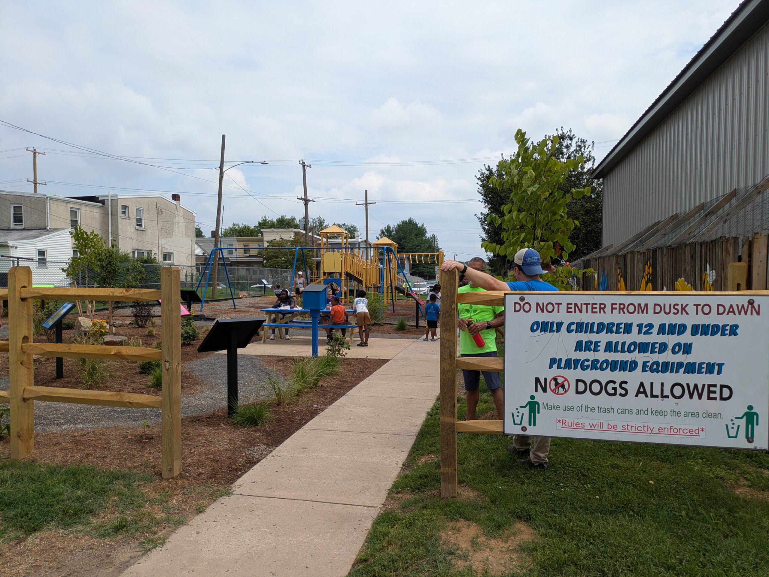 In Delaware County, the Council worked with the City of Chester, Legacy Arts Chester and Bonnie’s Community & Development Corp to make significant improvements to Sun Village Park, including a storybook walk and native pollinator garden, new picnic tables and benches, and vibrant mural and art installations around the park’s pavilion and tennis courts. The Council also worked with Trainer Borough, Marcus Hook Area Neighbors for Public Health, and the NMS Watersheds Alliance to install a storybook walk, native pollinator garden, native flowering trees, mural arts, and a free little library at Wilcox Park next to Monroe Refinery in Trainer. These revitalized park spaces in Delaware County provide residents with shaded spaces to connect with nature, art, literacy, and other neighbors. Respite and community gathering spaces help to build social connection and cohesion, which are vital to a community’s climate resiliency plan.