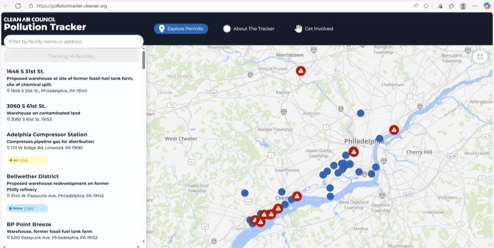 The goal of the Pollution Tracker is to help residents remain informed about the many industrial facilities in our region and partake in the public engagement processes surrounding their siting, development, and permitting. Clean Air Council regularly helps residents participate in these processes so that we can all protect public health in Southeastern Pennsylvania and reduce the emissions causing the climate crisis.