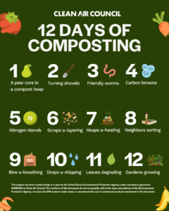 As we approach the new year, many of us like to think of resolutions for the coming months. Clean Air Council would like to recommend adding composting to your new habits for 2026. This blog post will provide you with what you need to start composting in your own backyard.